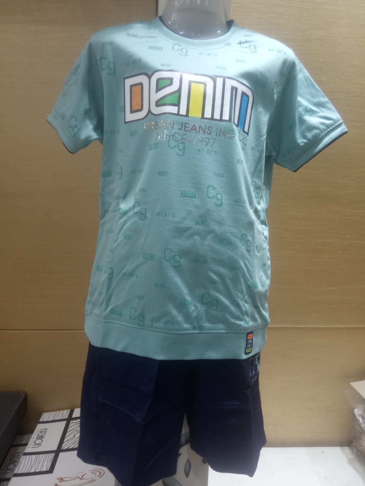 Dress your toddler in this cute baby boy t-shirt and shorts set, designed for comfort and modern style. The outfit features a stylish “Denim” printed t-shirt paired with comfortable shorts that allow easy movement during playtime.