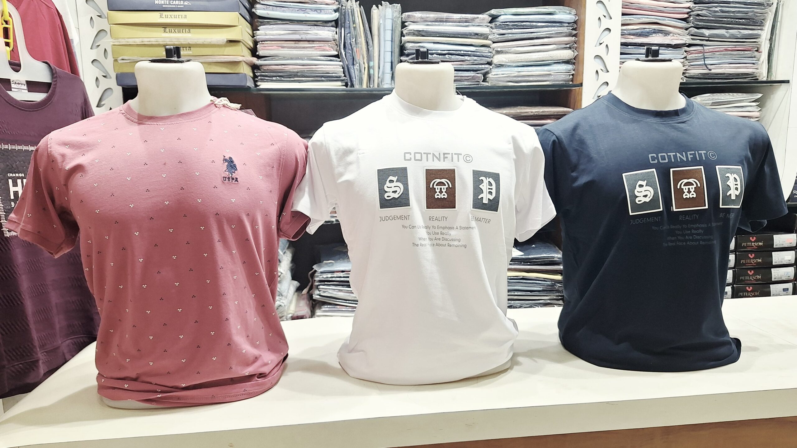 Available in three stylish colors – White, Navy Blue, and Pink, this t-shirt pairs easily with jeans, joggers, or casual trousers for a smart and effortless look.