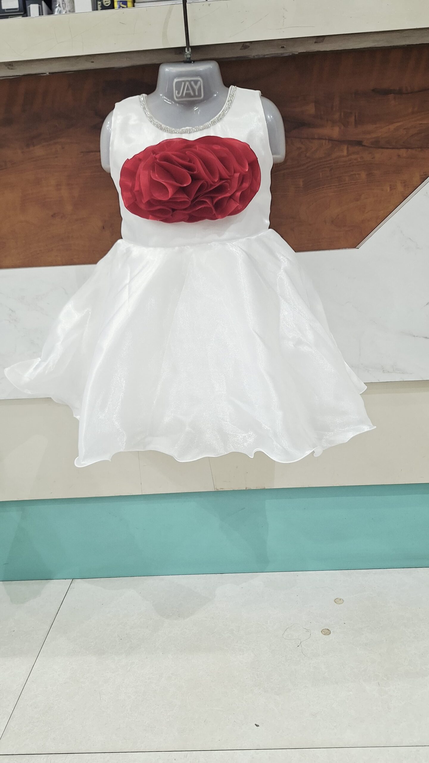 Elegant baby girl dress designed with soft fabric and beautiful floral detailing.